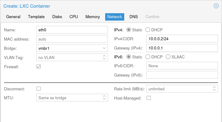 This is not a requisite! I’m just experimenting with my Proxmox VE and would like to explore how NAT/PAT virtual bridges work. Skip this step completely if your network configuration is different.